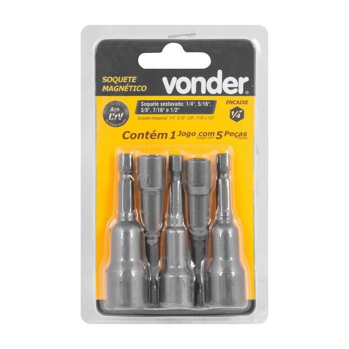 Jogo Soquete Magnetico Polegada com 5 peças - Vonder