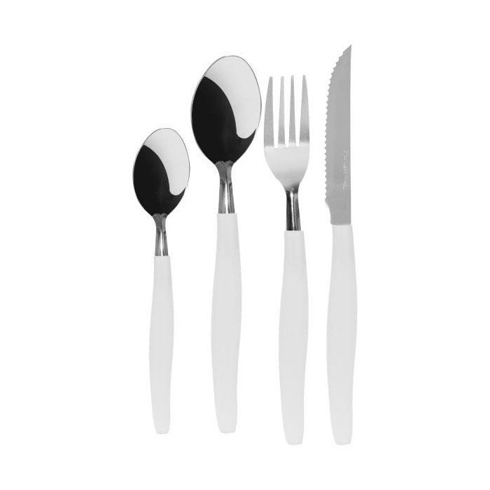 jogo talheres faqueiro 25 peças cabo branco 123útil inox Branco