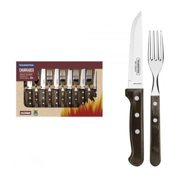 Jogo Talheres Jumbo Churrasco Inox Castanho 12pç 21198/976