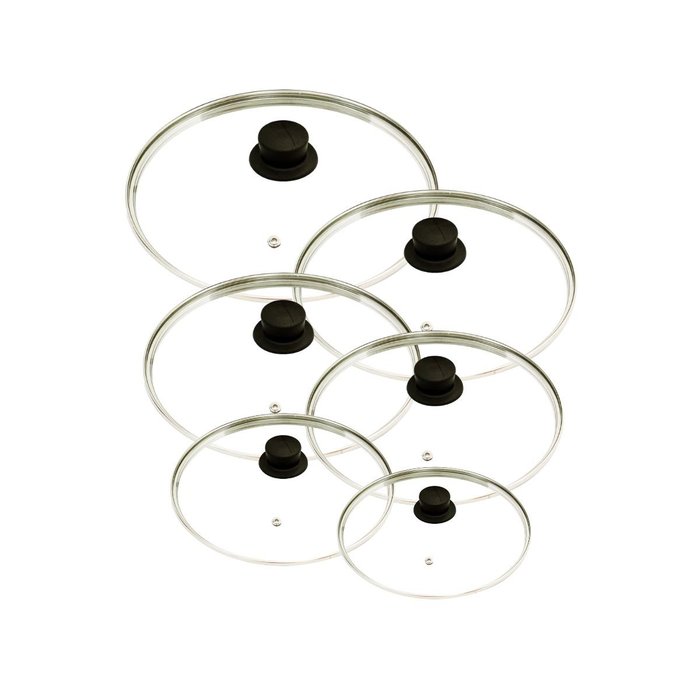 | Itens Inclusos | 01 Tampa de Vidro 12/13 cm 01 Tampa de Vidro 14/15 cm 01 Tampa de Vidro 16/17 cm 01 Tampa de Vidro 20/21 cm 01 Tampa de Vidro 24/25 cm 01 Tampa de Vidro 30/31 cm 06 Pomeis Pretos |