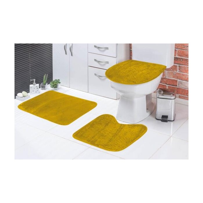 Jogo Tapete Banheiro 3 Peças Liso Amarelo Pelucia