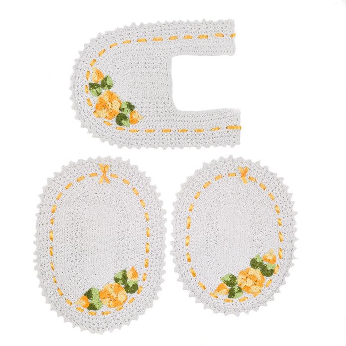 Jogo Tapete Banheiro Crochê 3 Peças Flores Algodão Decoração Branco
