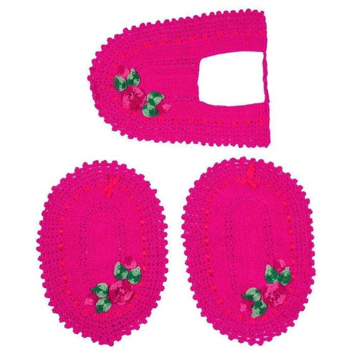 Jogo Tapete Banheiro Crochê 3 Peças Flores Algodão Pink
