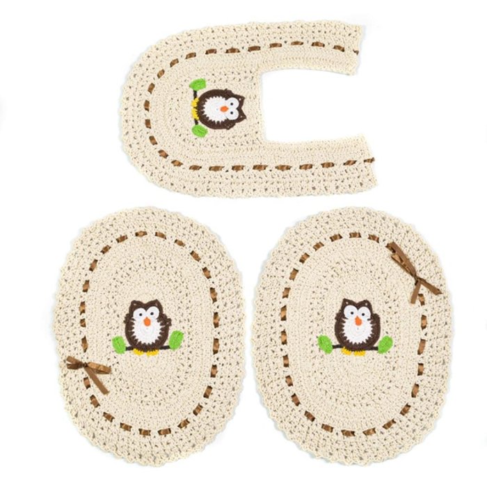 Jogo Tapete Banheiro Crochê Algodão 3 Peças Coruja Decoração