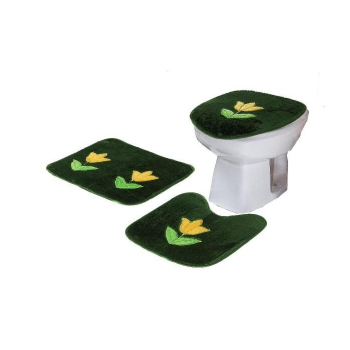 Jogo Tapete Banheiro Pelucia Padrao Tulipa Verde