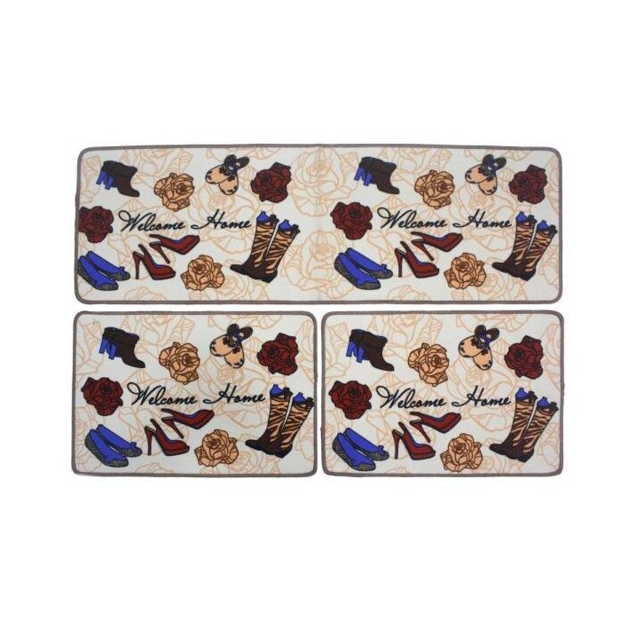 Jogo Tapete Cozinha 0,40 x 1,20Mt Flores e Sapatos Antiderrapante