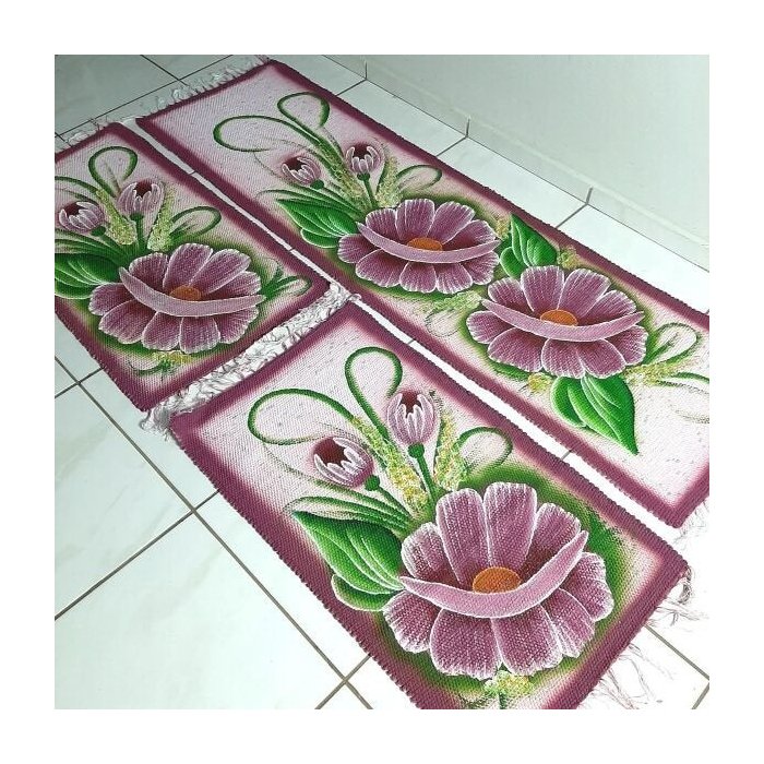 Jogo Tapete Cozinha 3 Peças Tear Pintado À Mão Flor Rose 02