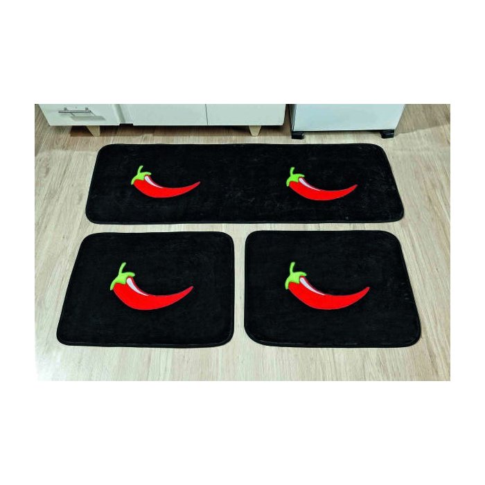 Jogo Tapete Cozinha Antiderrapante Pimenta Preto