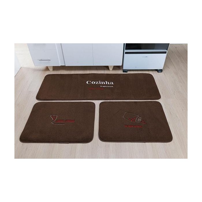 Todo mundo sonha com uma bela casa, não mesmo E a cozinha também não pode ficar de fora. Para decorar sua cozinha e acrescentar novos sentimentos à sua atmosfera, os Tapetes para cozinha são uma das peças fundamentais para isso. São vários e de várias formas, tudo para que você encontre o mais compatível com seus gostos e necessidades. recomendações de Uso, Manutenção e LimpezaProduto pode ser lavado com processos normais de lavagem, o mesmo não poderá ser colocado em máquinas de lavar, é necessário ser secado à sombra, para melhor durabilidade do produto, utilizar detergente neutro em poucas quantidades, não utilizar sabão em pó. Informações e instruções de lavagem também na etiqueta interna do produto. INFORMAÇÕES SOBRE O PRODUTO Composição:Superfície - Pelúcia 100% PoliésterBase - Feltro Pontilhado Com Bolinhas De Pvc Contém:01 PASSADEIRA DE 1,35 X 48 + 02 TapeteS DE 60 X 48