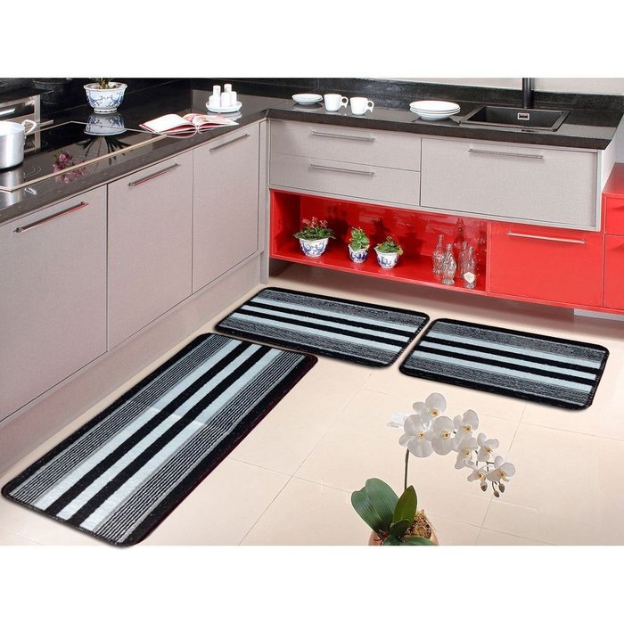 Jogo Tapete Cozinha Kit 3 Peças Antiderrapante Belo Kit Cor 18 Preto