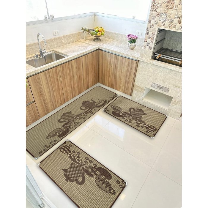 Principais Características:- Kit com 3 peças – Completo para decorar sua cozinha de forma harmoniosa.- Material durável e resistente – Produzido com 87% polipropileno e 13% poliéster, garantindo longa vida útil.- Base 100% antiderrapante – Segurança extra ao evitar deslizes e escorregamentos.- Estampa elegante – Xícaras e bules que criam um ambiente acolhedor e convidativo para sua cozinha.