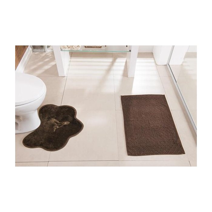 Jogo Tapete De Banheiro Beija Flor Café 02 Pçs