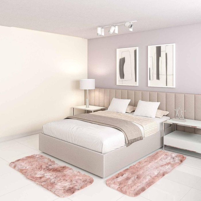 Jogo Tapete Passadeira Quarto 2 Uni Mescla Bege 50 X 140 Cm