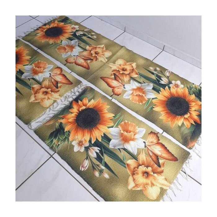 Jogo Tapete Pra Cozinha Tear 3 Peças Sublimado Girassol 02