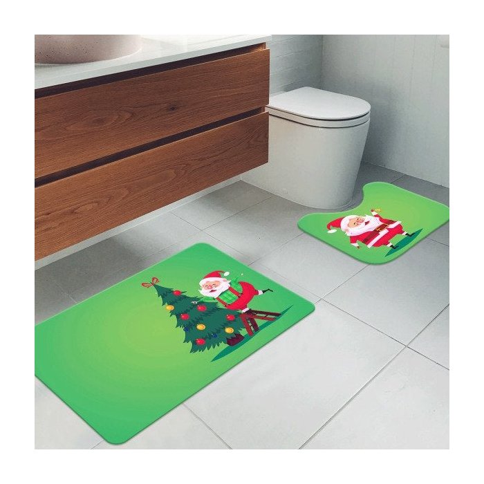Jogo Tapetes de Natal para Banheiro 2 Peças Cute Noel Green -