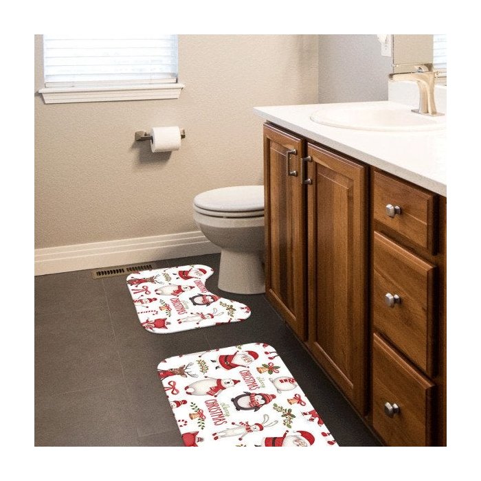 Jogo Tapetes de Natal para Banheiro 2 Peças Merry Christmas -