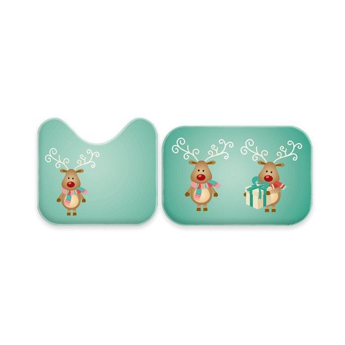 Jogo Tapetes de Natal para Banheiro 2 Peças Rena Cute -