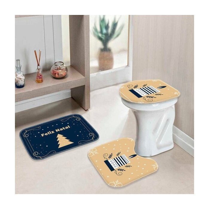 Jogo Tapetes de Natal para Banheiro Símbolos Natalinos -