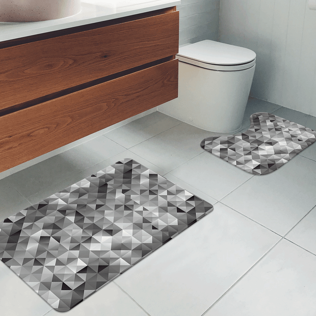 Jogo Tapetes para Banheiro 2 Peças Triâgulos Cinza cinza