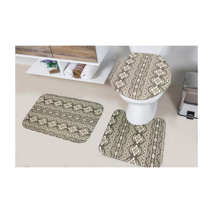 Jogo Tapetes para Banheiro Tecil Pop 3 Peças Tribal Cinza