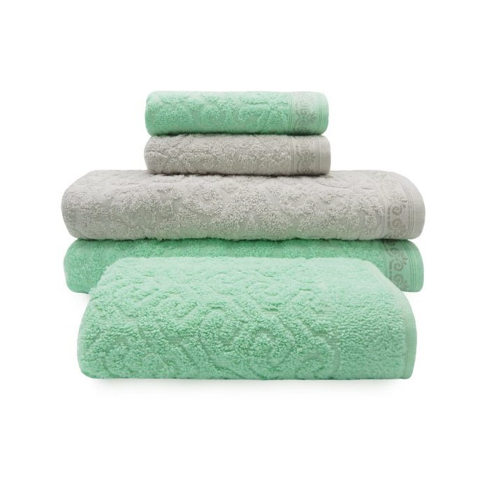 Jogo Toalhas Banhão 5 Peças Ornato Felpudas Appel Gelo/Mint