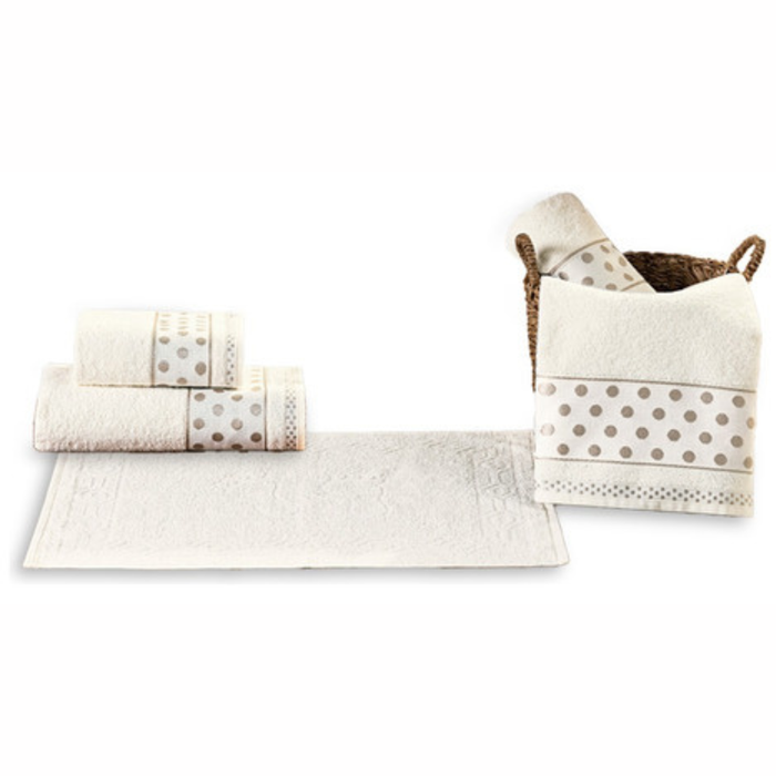 O kit é composto por 5 peças: 2 toalhas de banho gigantes, 2 de rosto e 1 toalha de piso.