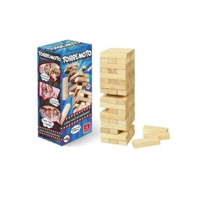 O tradicional torremoto é um jogo educativo que faz com que a criança se esforce para montar uma torre sem deixar nenhum bloquinho de madeira cair, e tem como objetivo estimular o equilíbrio, coordenação motora e percepção da criança.