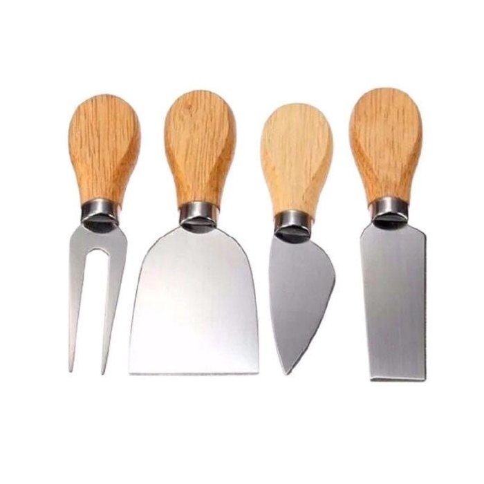 Kit para Queijo 4 Utensílios Garfo Faca Espátula Cab Madeira e Tabua.