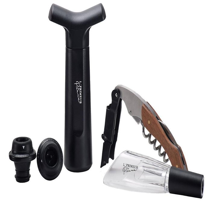 Jogo Vinho Abertura Degustação e Conservação Adega Prana Preto