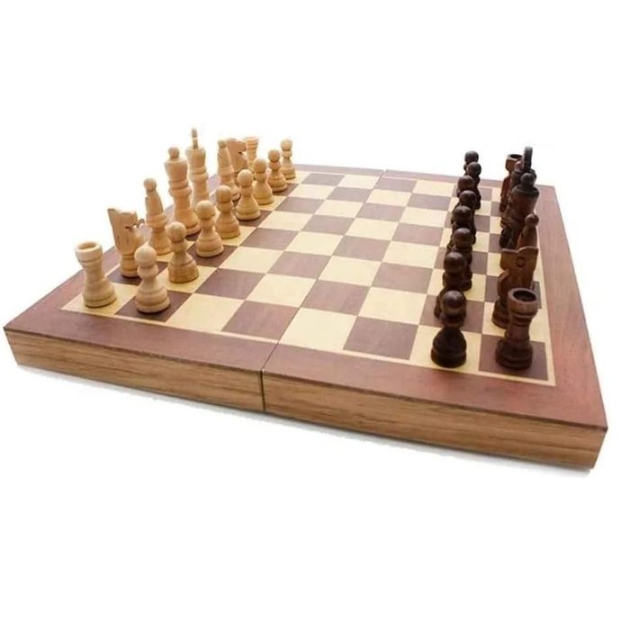 - Xadrez: 16 peças marrom e 16 peças marfim.