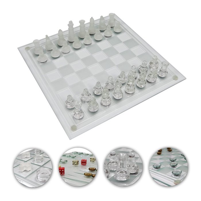 Peças e tabuleiros de vidro com ótimo acabamento e qualidade, um objeto tão bonito que pode ser usado até mesmo para decorações