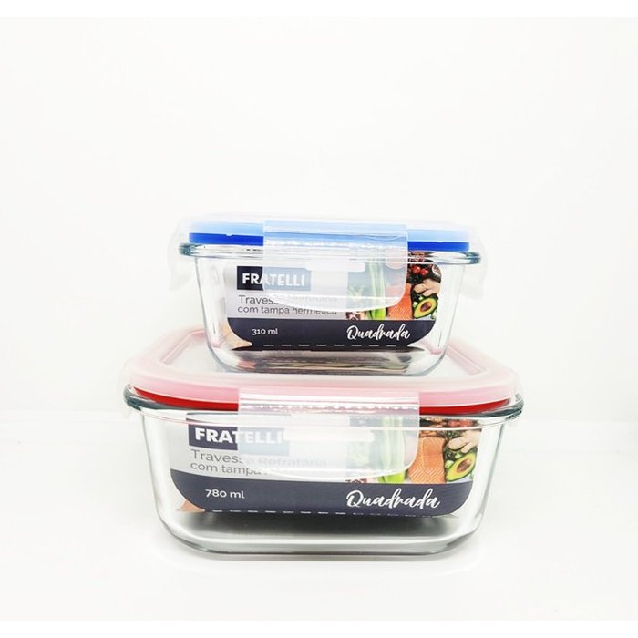 Ki 2 Potes Herméticos Vidro Quadrado Tampa com Trava 310ml e 780ml - Fratelli