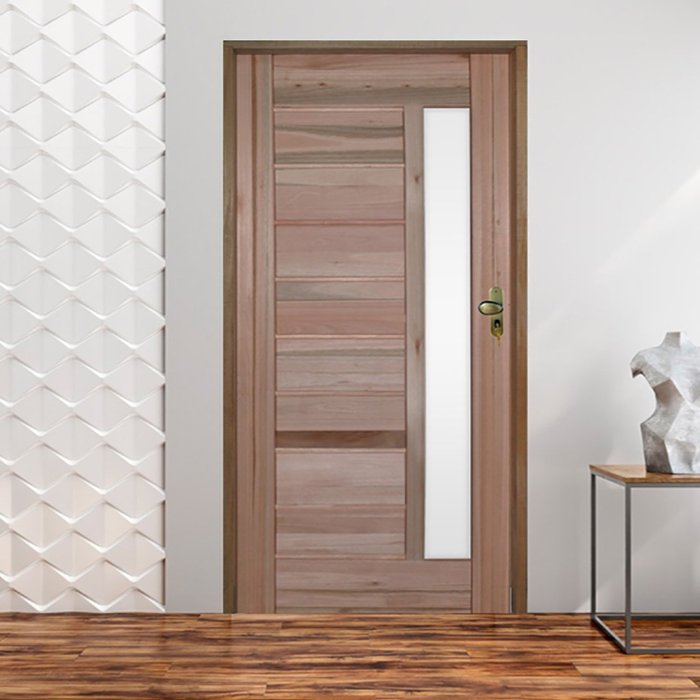 Ki Porta de Madeira BBB com Visor 210x72cm Batente 11cm Fecharura Golf Rodam Padrão Cedrinho