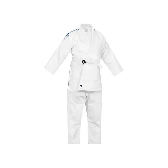 Kimono Judo Contest adidas J650 - blusão tecido trançado azul, 40% algodão e 60% poliéster, gramatura de 650 gr/m2 com múltiplos reforços, indicado para torneios e treinamentos.