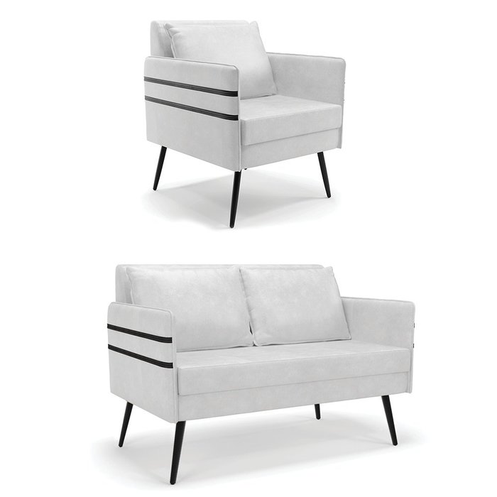 Kit 01 Namoradeira 02 Lugares e 01 Poltrona Mari Corano Pés Palito de Ferro - D'Rossi DRossi Branco