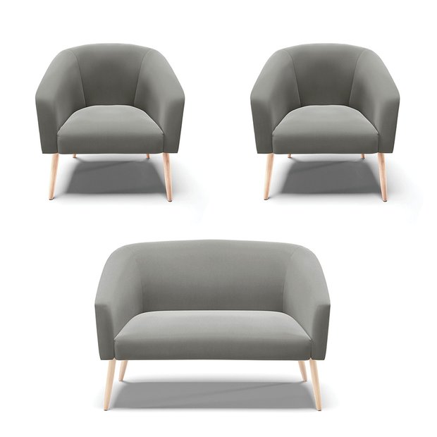 Ver imagem 1 de Kit 01 Namoradeira 02 Lugares e 02 Poltronas Stella Suede Pés Palito Natural - D’Rossi - Grafite