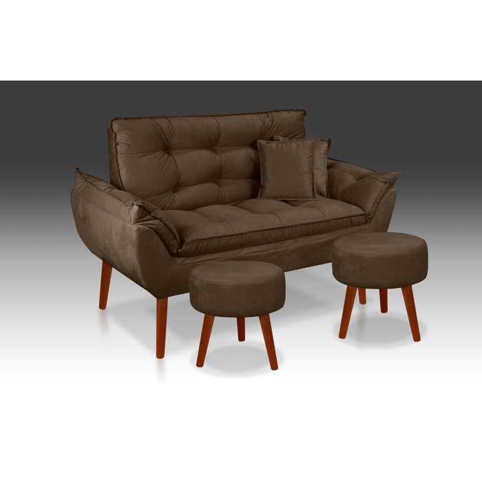 Kit 01 Namoradeira Opala + 02 Puff Redondo + 02 Almofadas Suede Marrom- Casa da Poltrona
