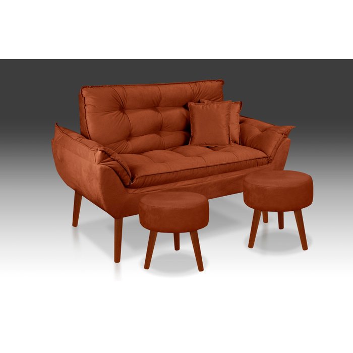Kit 01 Namoradeira Opala +02 Puff Redondo + 02 Almofadas Suede Terracota- Modena Decor