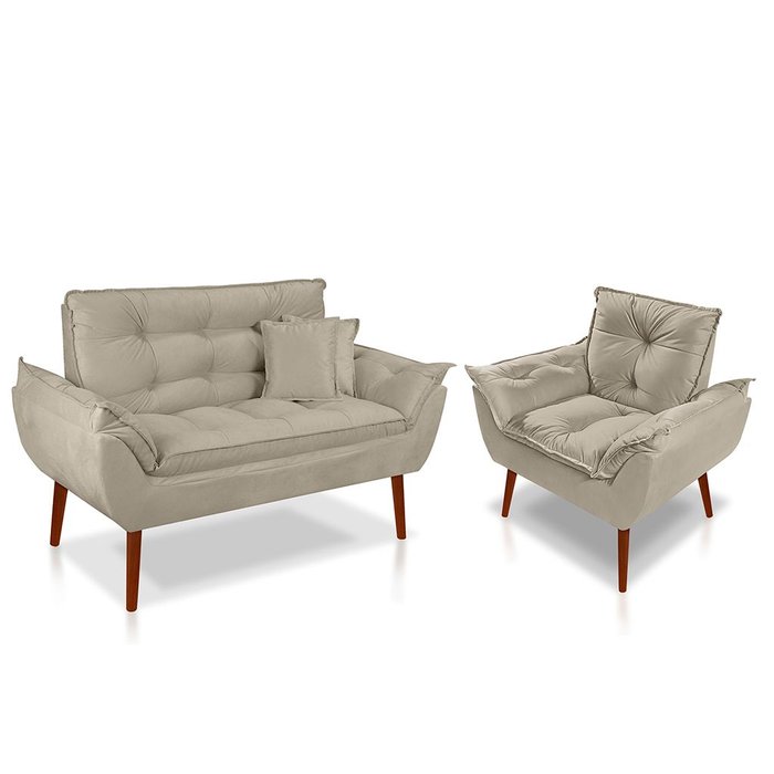 Kit 01 Poltrona + 01 Namoradeira Opala + 02 Almofadas Suede Bege-rv Decora