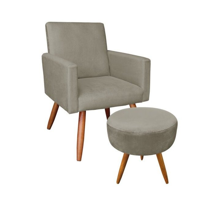 Kit 01 Poltrona com 01 Puff Larissa Suede Marrom Rato Pés Palito de Madeira D' Rossi Marrom Rato