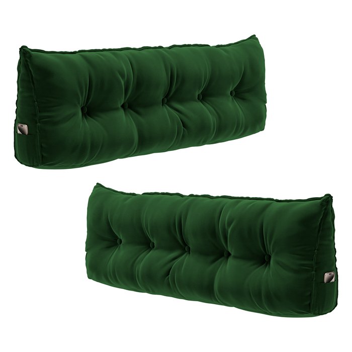 Kit 02 Almofadas para Cabeceira Encosto Apoio Lombar Spot 140cm com Porta Celular Veludo - Desk Desi Verde escuro