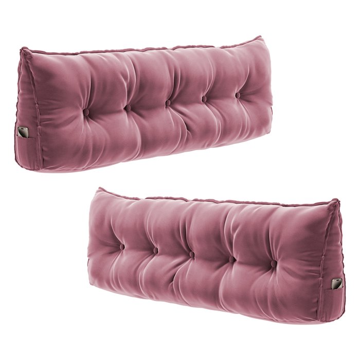 Kit 02 Almofadas para Cabeceira Encosto Apoio Lombar Spot 195cm com Porta Celular Veludo - Desk Desi Rosa