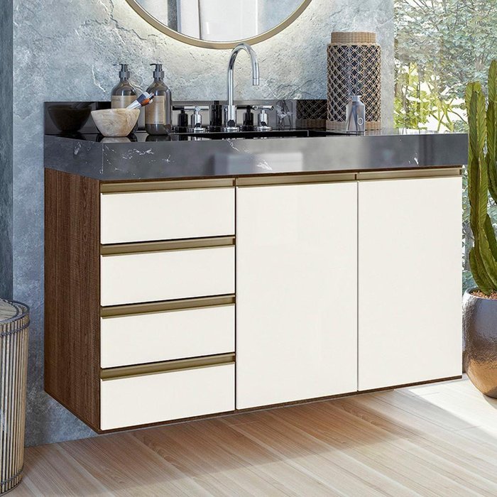 Kit 02 Balcoes Para Banheiro Cj16 Amendoa Rust Off White