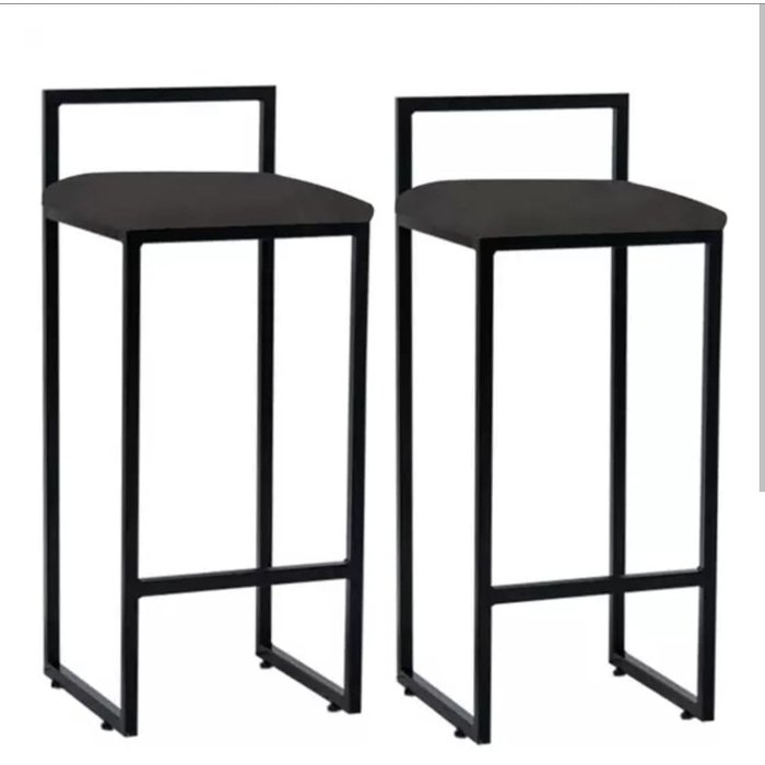 Kit 02 Banqueta Alta Jade Industrial Cozinha Bar Balcão Bistrô Ferro Preto Suede Preto Preto