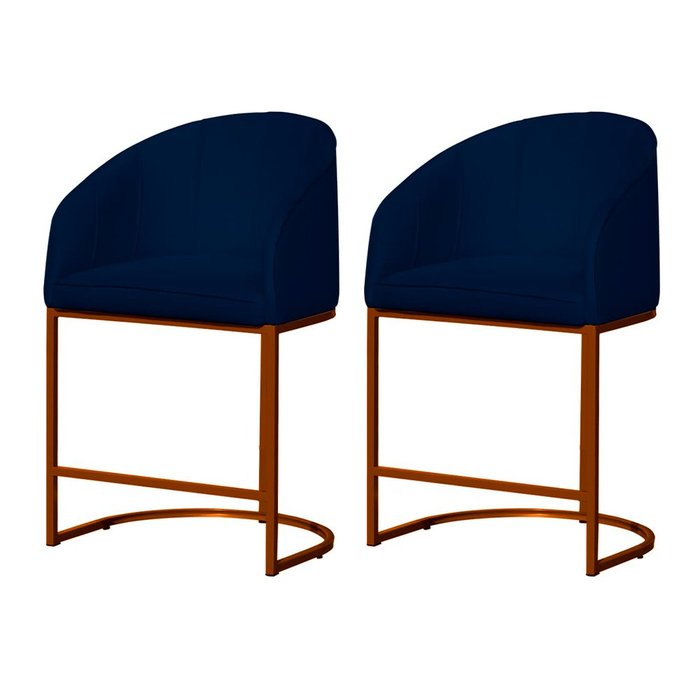 Kit 02 Banqueta Mia Base Metálica Cobre Suede Azul Marinho - Vallisa Decor