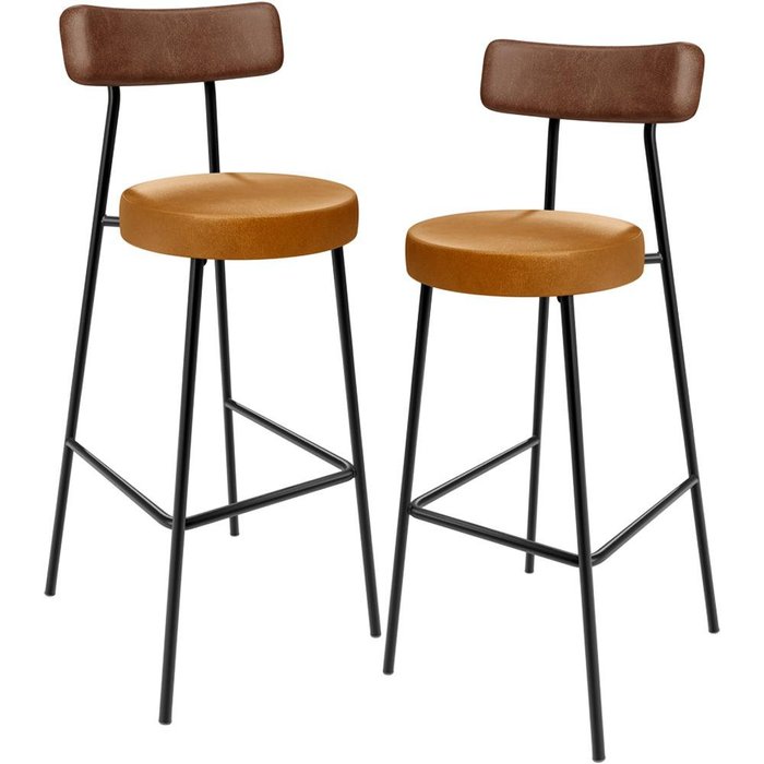Kit 02 Banquetas Alta Bar Cozinha Sala De Jantar Milão L02 Couríssimo Marrom Whisky - Lyam Decor