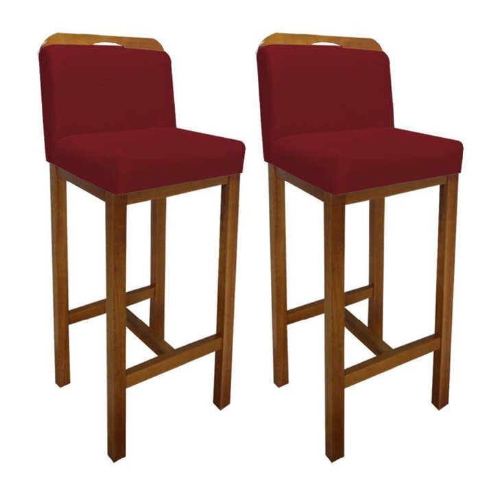 Kit 02 Banquetas Alta Bia Com Aplique Suede Vermelho E Pés De Peroba Reto Bela Casa Shop