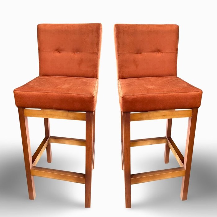 Kit 02 Banquetas Alta com Encosto Anatomico Tokio Suede Terracota - G2home Terracota