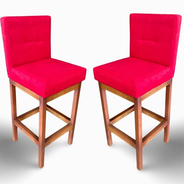 Kit 02 Banquetas Alta com Encosto Anatomico Tokio Suede Vermelho - G2home Vermelho