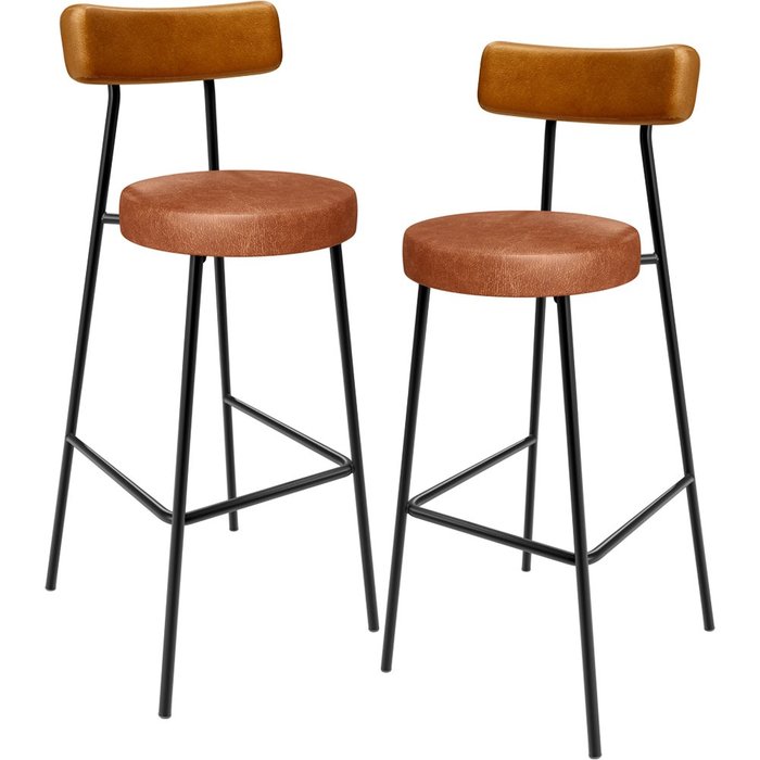 Kit 02 Banquetas Alta Cozinha Sala Jantar Milão L02 Couríssimo Whisky Couríssimo Camel - Lyam Decor